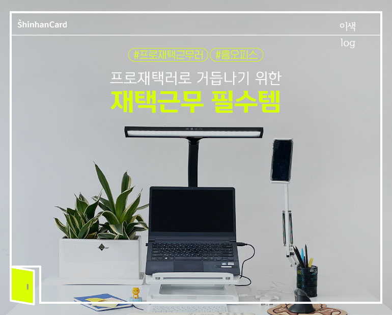 #이색log #이색로그 #신한카드 #재택근무 #재택근무러 #프로재택러 #비대면업무 #원격회의 #포스트코로나 #포스트코로나시대 #집업실 #작업실 #재택근무필수템 #홈오피스 #노트북거치대 #휴대폰거치대 #태블릿PC거치대 #책상조명 #탁상조명 #책상스탠드 #탁상스탠드 #버티컬마우스 #손목보호마우스 #손목보호마우스패드 #팜레스트 #키보드받침대 #USB허브 #멀티포트 #자세교정의자