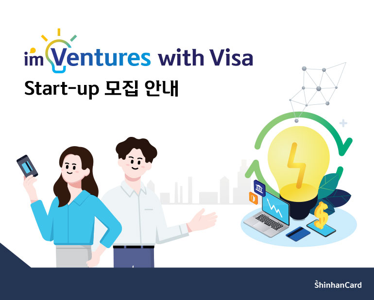 신한카드와 비자가 함께 연결고리가 되어주는 든든한 합작, 아임벤처스 스타트업 육성 프로그램과 손을 맞잡아 주세요!