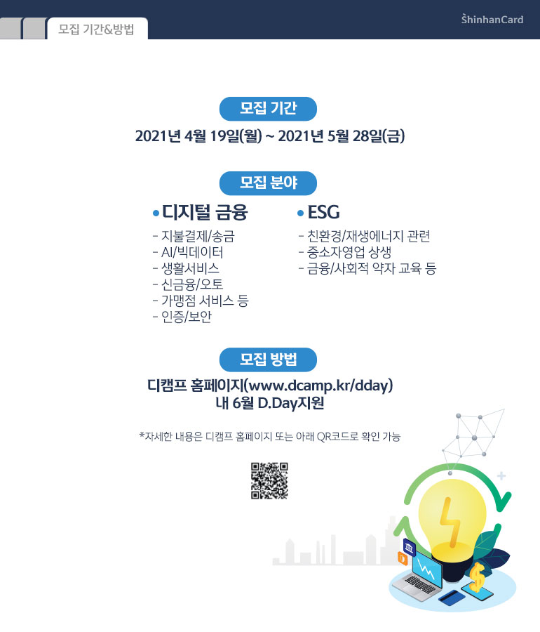| 신한카드 디지털 이노베이션 공모전 - 당신의 아이디어가 실현되는 공간 (0) | 2020.08.28 |