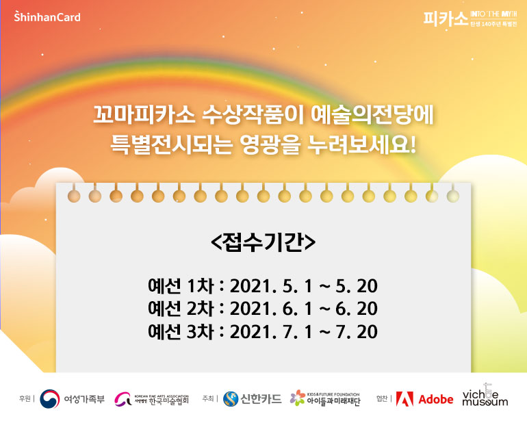 올해는 피카소 탄생 140주년을 맞은 해입니다! 동시에, 신한카드가 꼬마피카소들의 꿈과 상상력의 스케치북이 되어준, <꼬마피카소 그림대회>를 개최한지 20주년이 되는 해이기도 하죠. 여성가족부의 후원을 받으며 신한카드의 대표 문화행사가 된 그림대회인 만큼, 작년부터는 언택트 시대에 발맞춰 디지털 응모 방식으로 진행하는 변모를 보여주고 있죠.
