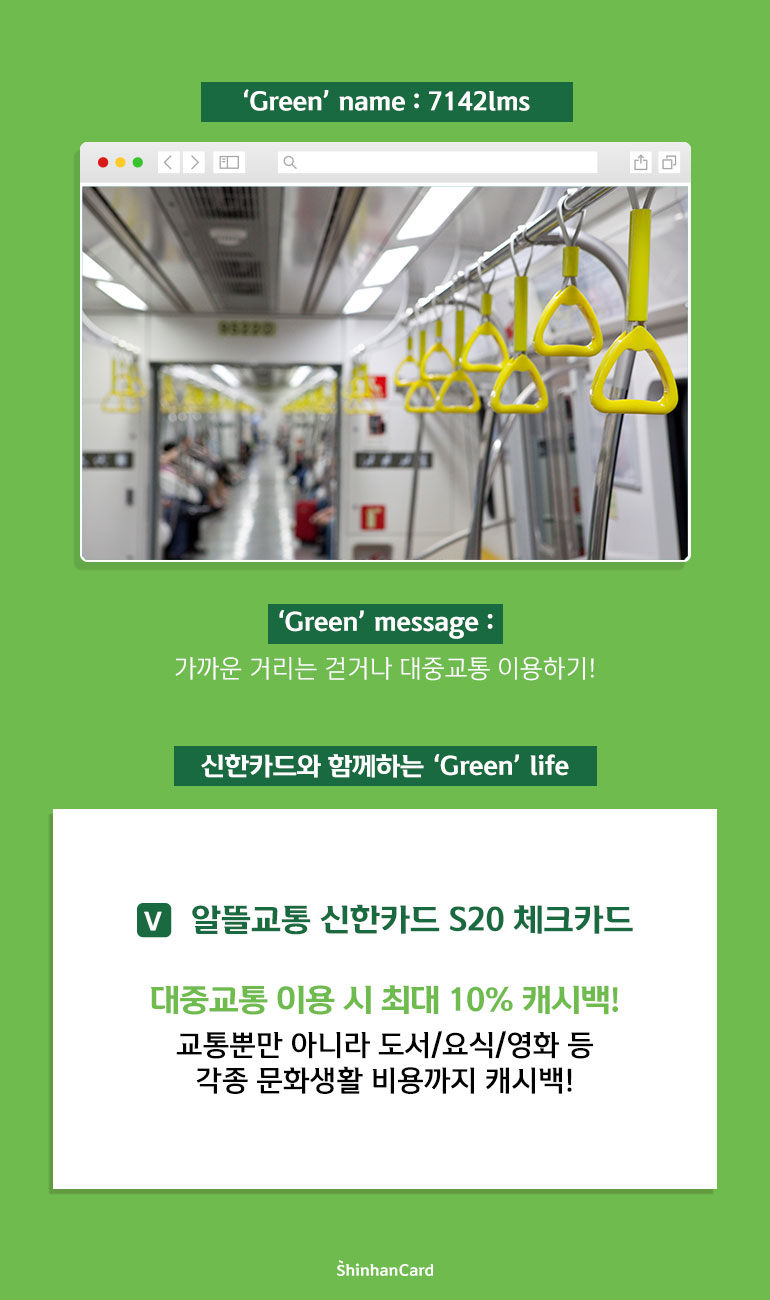신한카드와 함께하는 ‘Green’ life <알뜰교통 신한카드 S20 체크카드>