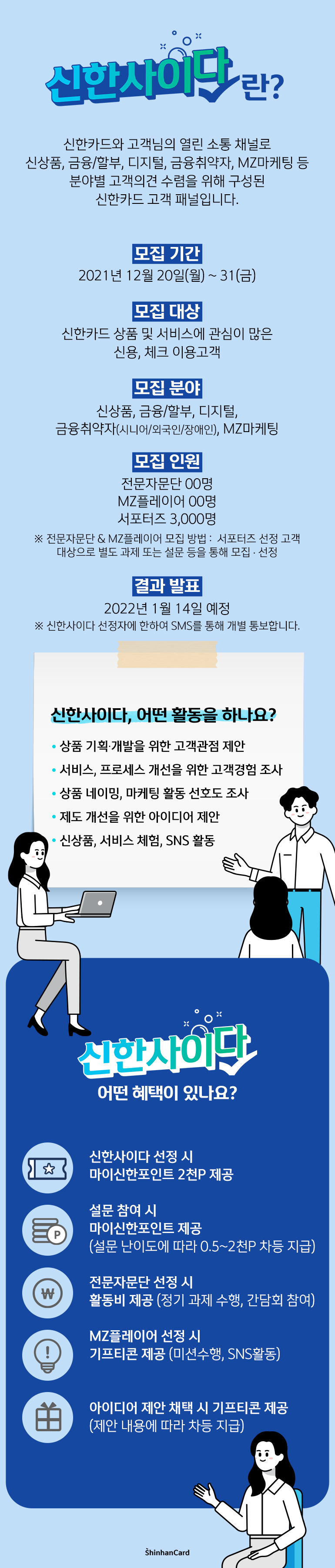 2022년 더 멋진 신한카드를 함께 만들어 주실 신한카드의 소비자 대표 고객 패널!! '신한사이다' 2기를 모집합니다.