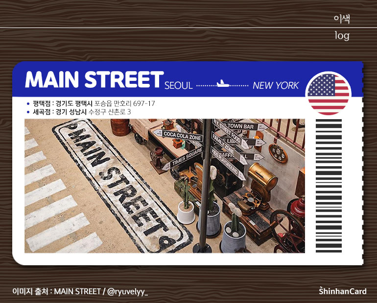 1,500평이라는 초대형 규모를 자랑하는 MAIN STREET은 남다른 화려함과 웅장함을 자랑합니다. 3층짜리 외관을 덮고 있는 벽돌은 300년이 넘는 것으로 외국에서 특별히 공수해 왔다고 하는데요. 이렇게까지 진심으로 뉴욕을 재현한 스케일답게 넉넉한 주차 공간도 확보하고 있고요. 메인 입구로 향하는 길목은 첼시의 가로등을 연상케 하는 조명으로 꾸며져, 들어가기 전부터 뉴요커가 된 기분을 느끼게 될 거예요.