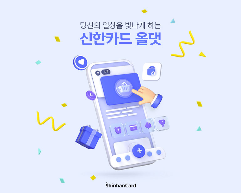 언제 어디서나 내게 필요한 소비를 가능케 하는 신한카드의 특별한 쇼핑 플랫폼, ‘올댓’이 더 새롭게 돌아왔습니다. 단순한 구매 행위를 넘어서 고객의 라이프 스타일을 전반을 케어해주는 신한카드 올댓서비스! 가전, 전자, 생활용품 등 라이프 스타일 전반에 필요한 모든 카테고리를 반짝이는 제품들로 마련해두었으니, 일상을 새롭게 편집하고 구성하는 재미와 성취를 느끼러 가볼까요?