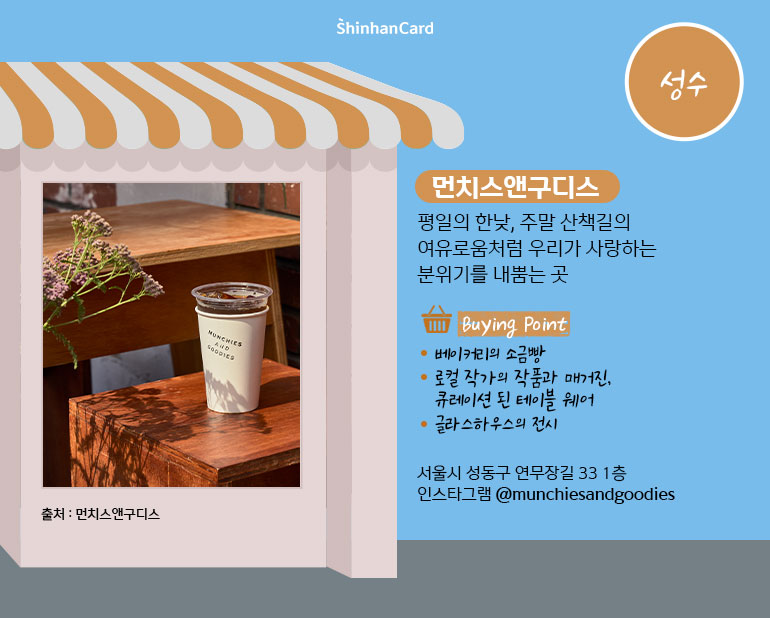 서울의 여기저기 발 닿는 대로 만난 특색 있는 장소를 소개해 드리는 신한카드의 새로운 큐레이션, 어쩌다 시리즈. 신한카드가 ‘어쩌다’ 발견한 보물 같은 SPOT에서 나의 취향에 꼭 맞는 제품을 ‘어쩌다’ 만나보세요!