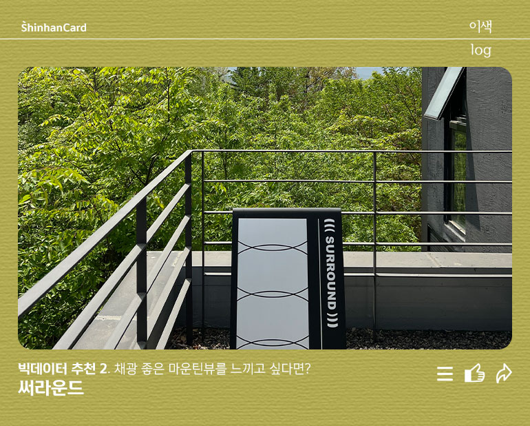 커피, 공간, 풍경 그리고 음악으로 둘러싸인 분위기 끝판왕 써라운드는 2020년 5월 1호점 오픈 이후 2호점 오픈을 앞두고 있을 만큼 그야말로 핫플레이스인데요. 채광 좋은 마인틴뷰에서 즐기는 유유자적한 느낌을 가득 느낄 수 있는 써라운드에서 마지막 봄의 정취를 느껴봅시다.