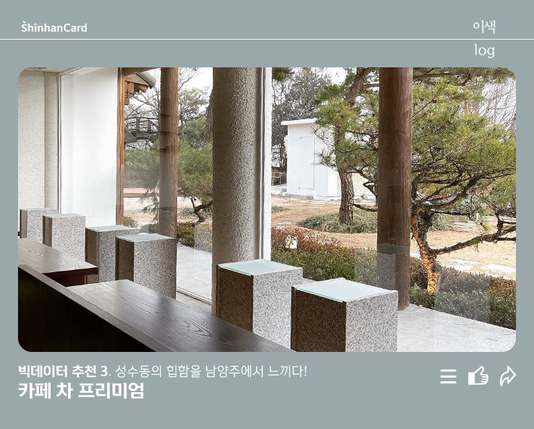 입하(立夏)가 지났어도 아직 우리의 마음만은 봄을 꼭 붙잡고 있습니다. 이 계절에만 누릴 수 있는 분위기라는 것이 있으니까요. 그러니 더위에 봄의 자리를 내어주기 전에 아직 개시하지 못한 봄옷들을 부지런히 챙겨 입고 나들이를 떠나야 합니다. 오늘은 신한카드 빅데이터연구소가 추천하는 핫플레이스 2탄! 남양주로 떠나봅니다. 서울 근교로 드라이브 겸 나들이 가기 참 좋은 코스죠. 산뜻한 봄바람이 아직 우리 곁에 남아 있을 때 지금이 가장 놀기 좋을 때라는 사실!