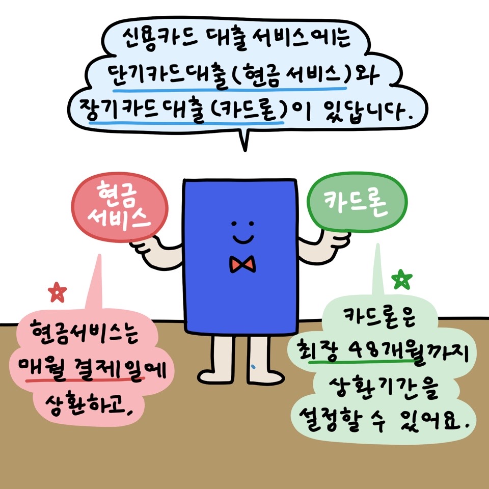 신용카드로도 대출이 가능하다는 점, 혹시 알고 계셨나요? 오늘은 신용카드 대출에 대한 알찬 정보를 가지고 왔습니다! 신용카드 대출 서비스와 다양한 상환 방식에 대한 정보를 야무지게 알려주니 지금 바로 <신카 사용 꿀팁> ep.05에서 확인해보세요~~