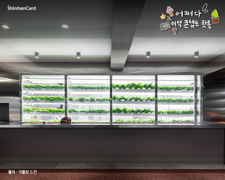 이곳은 365일 깨끗하게 작물이 재배되는 실내 수직 농장과 화성을 연상시키는 소재의 인테리어가 돋보이는데요. 우주에 설치된 농장 같은 정취를 활용해 개발한 우주식량 콘셉트의 ‘플래닛샐러드’ 4종과 바질 파인애플 소르베와 바질 라임 에이드 등 이곳에서 직접 재배된 채소로 만나는 메뉴와 함께 미래에도 맞이할 푸른 식탁을 기대해보면 좋겠습니다.