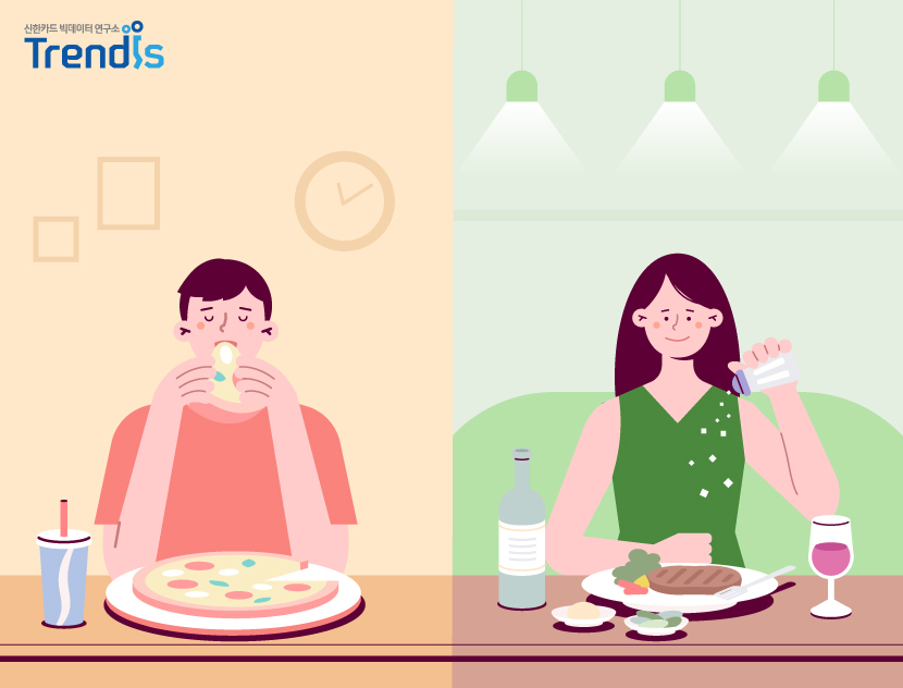지금까지 살펴본 것처럼 외식 소비는 개인의 재정 상태와 경제 상황에 따라 변화가 큰 영역이고요. 동시에 선호 유형에 따라 개인의 라이프스타일을 예측해볼 수 있는 중요 지표라고 볼 수 있습니다.