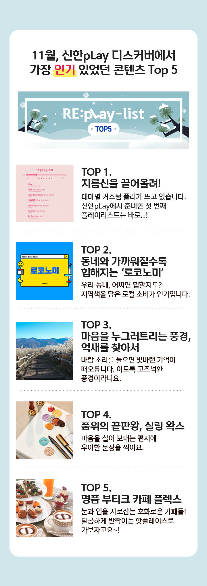 #신한카드 #신한pLay #디스커버 #이벤트 #트렌드 #관심사 #커뮤니티 #11월 #인기컨텐츠 #리플레이리스트