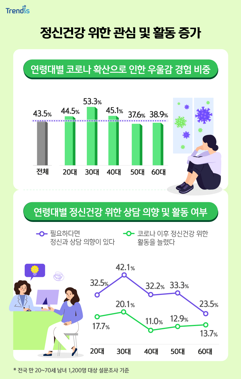 한편 설문 조사를 통해 신체적 건강 뿐만 아니라 정신 건강에 대한 관심도 전반적으로 높아졌음을 확인할 수 있는데요.