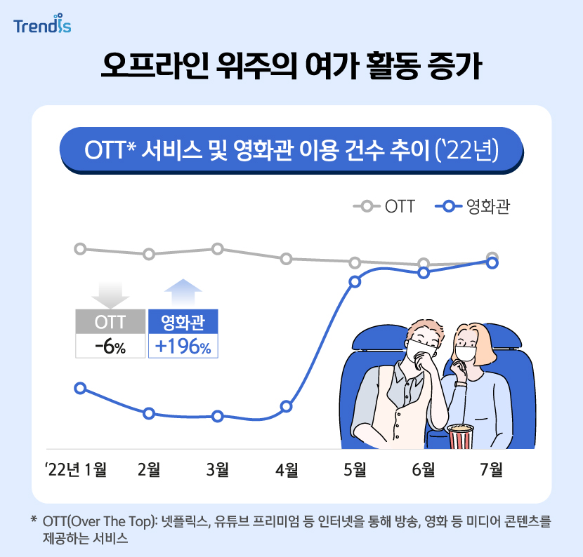 거리두기 해제 전인 1분기 대비 196%나 증가해, 감소 추이를 보인 OTT 서비스와는 대조적인 모습입니다.