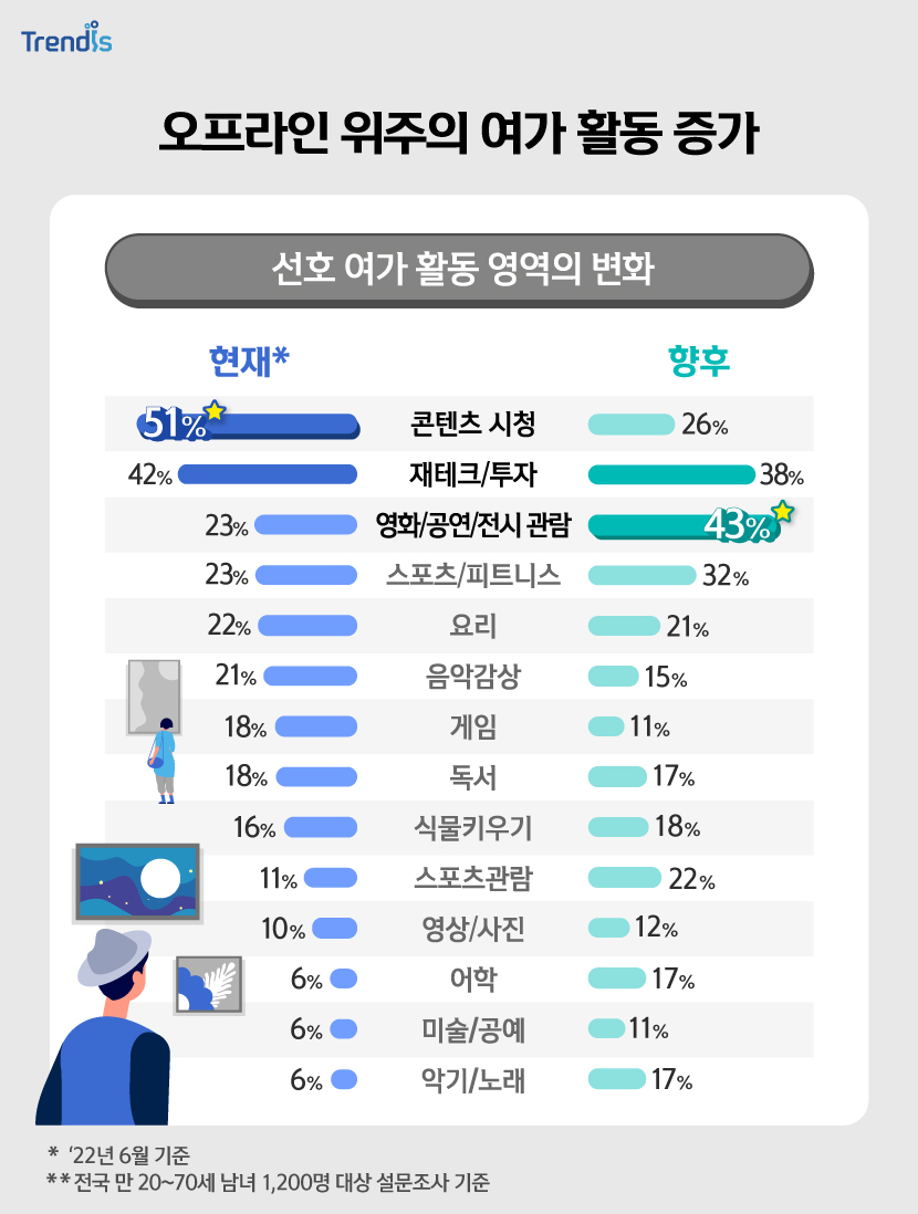 그 동안 우리의 일상을 차단시켰던 각종 규제가 사라지고 있는 엔데믹 시대에는 여가 영역에서 또 어떤 특징들이 나타나고 있는지