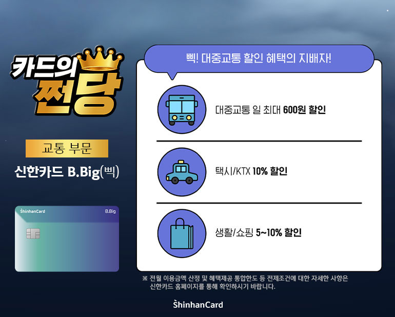 “매일매일 가는 길마다 신한카드 교통 Big 할인!"