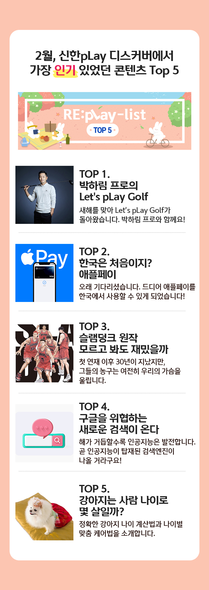 | 신한pLay 디스커버 3월 인기 콘텐츠 TOP 5 (0) | 2023.04.06 |