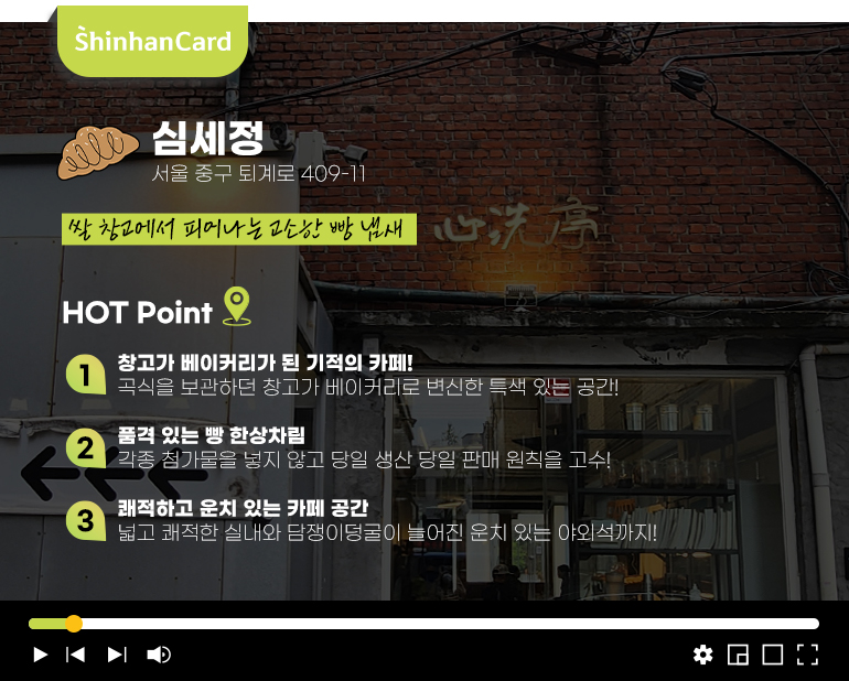 힙당동에서 골목길 감성과 행복한 맛을 담당하고 있는 베이커리 카페 <심세정>은 과거 곡식을 보관하던 창고가 재개발을 견디고 살아남아 베이커리로 변신한 공간입니다. 나름의 역사와 풍파를 견디고 마침내 세련되게 변모한 곳이죠. 이제는 신당동을 대표하는 카페로 자리잡았답니다. ‘심세정’은 “마음을 씻고 편히 머물다 가는 정자”라는 뜻인데요. 꼭 그간의 시간을 보여주는 문장 같습니다.