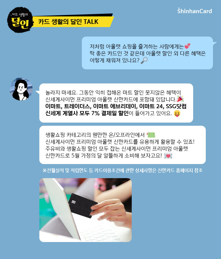 #신한카드 #신한카드추천 #신한신용카드 #신한신용카드추천 #신용카드추천 #가정의달 #아울렛카드 #아울렛카드추천 #아울렛할인 #신세계아울렛 #신세계아울렛카드 #할인카드 #적립카드 #신세계사이먼프리미엄 #신세계프리미엄아울렛신한카드