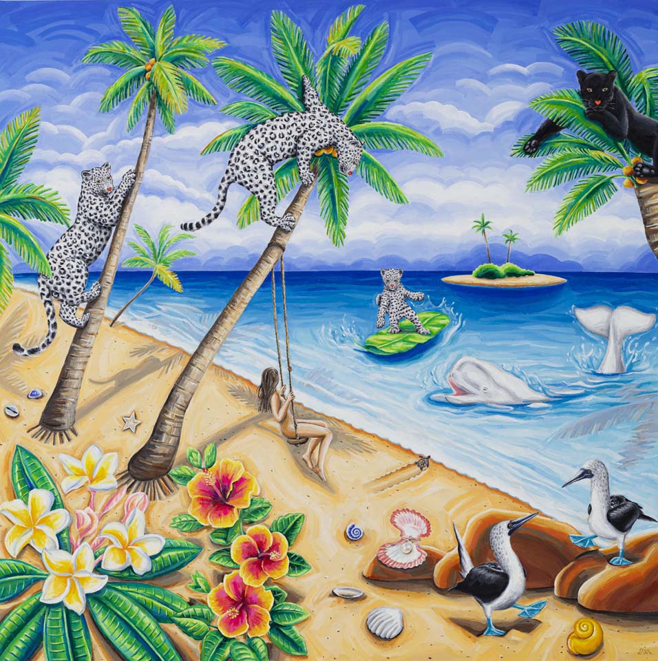저는 누구나 가슴 속에 어떤 형태로든 파라다이스가 존재한다고 생각해요. 얼마 전 한 컬렉터님이 제 그림을 보고 고등학교 때 치던 낡은 기타를 꺼내셨다고 하시더라고요. 이렇게 제 그림이 각자의 가슴 속에 잊고 있던 파라다이스를 찾는 보물 지도가 되었으면 좋겠어요.