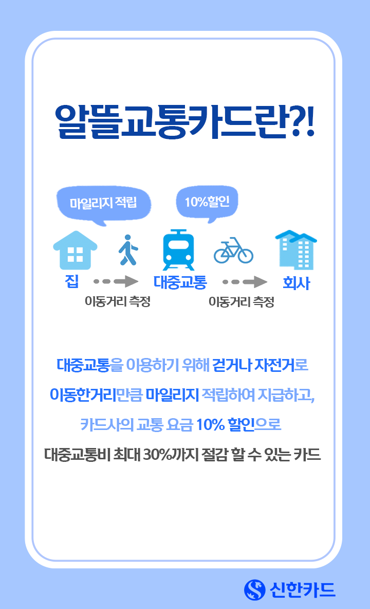 지금 바로 신한카드에서 알뜰 교통카드 발급받고 더욱 알뜰하게 현명하게 절약하는 교통 생활 해보자구요!