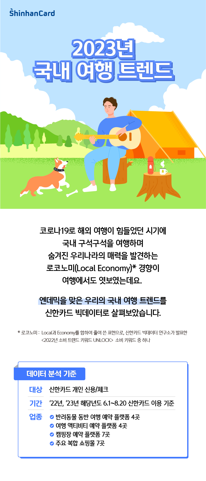 코로나19의 여파로 해외보다 국내 구석구석을 여행하셨던 분들 많으실 텐데요! 올가을 여행 계획은 어떻게 하고 계시나요? 엔데믹을 맞은 현재, 2023년 국내 여행 트렌드는 어떠한지 신한카드 빅데이터로 함께 알아봅시다!