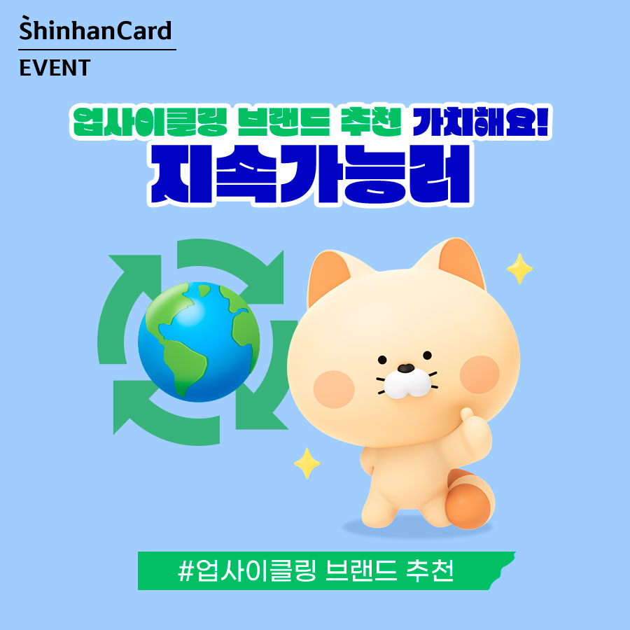 신한카드는 9월 에코백 사용 인증 이벤트, 10월에는 반려동물 등록 활성화를 위한 반려동물 등록 독려 이벤트에 이어 11월에는 버려지는 제품을 새롭게 디자인해 새 제품으로 재탄생시키는 ‘업사이클링 실천 브랜드 추천 댓글 이벤트’를 진행합니다. 우리 삶 속 환경까지 생각하는 트렌디한 업사이클링 브랜드들을 알아보고 환경 보호를 위한 가치 있는 소비에 동참해 봅시다. 그동안 나만 알고 있던 업사이클링 브랜드가 있다면 더 많은 사람들이 알 수 있도록 공유하고 신한카드와 함께 친환경 가치 소비에 앞장서 보는 건 어떠세요?