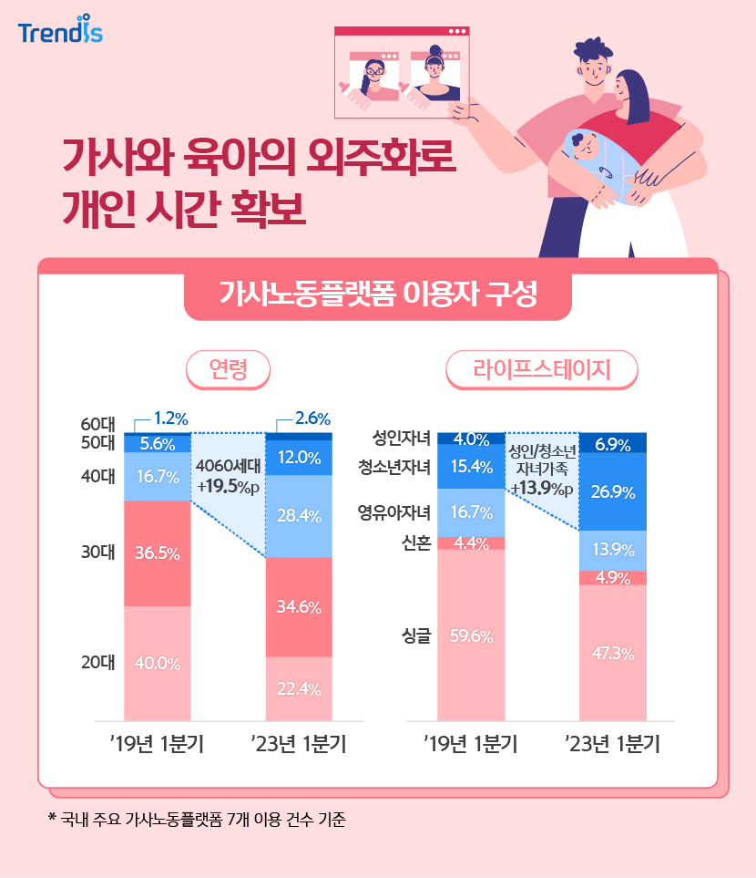 가사와 육아 외주화의 흐름도 아주 빠르게 가속화 하고 있습니다.