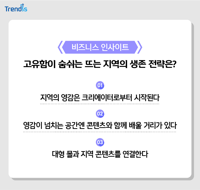 안목 있는 소비자들이 선택한 성동구, 송파구, 영등포구의 사례로 우리는 지역과 공간의 고유함, 즉 로컬리티 형성에 도움을 주는 몇가지 인사이트를 포착할 수 있습니다.