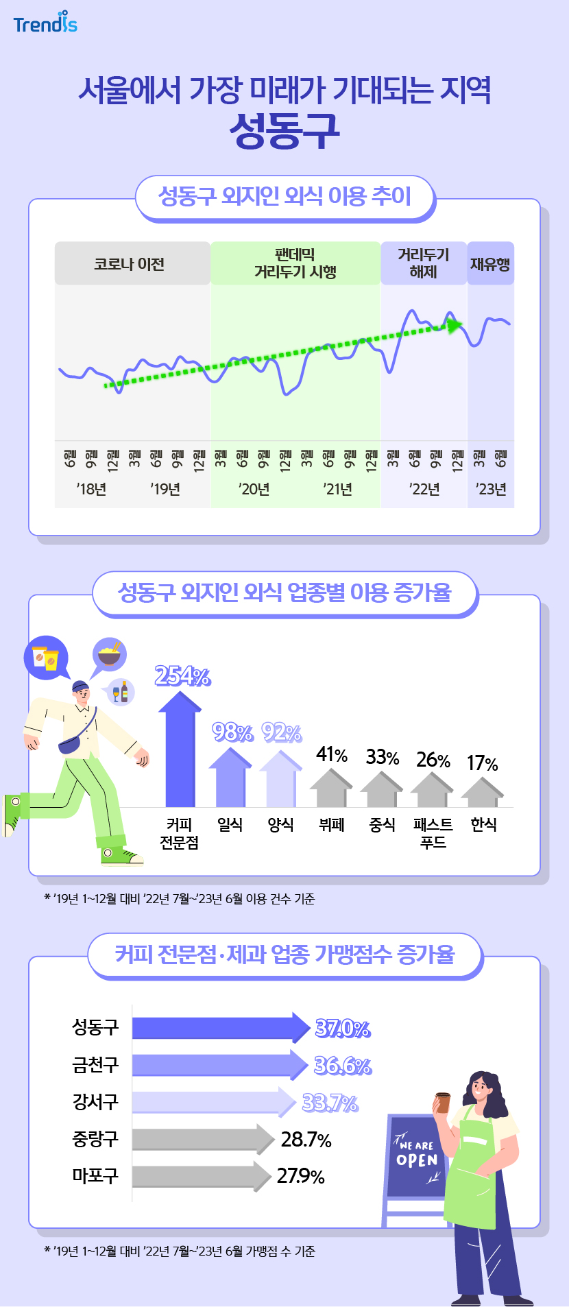 특히 성동구에서는 커피 전문점, 즉 카페 이용이 돋보였는데요.