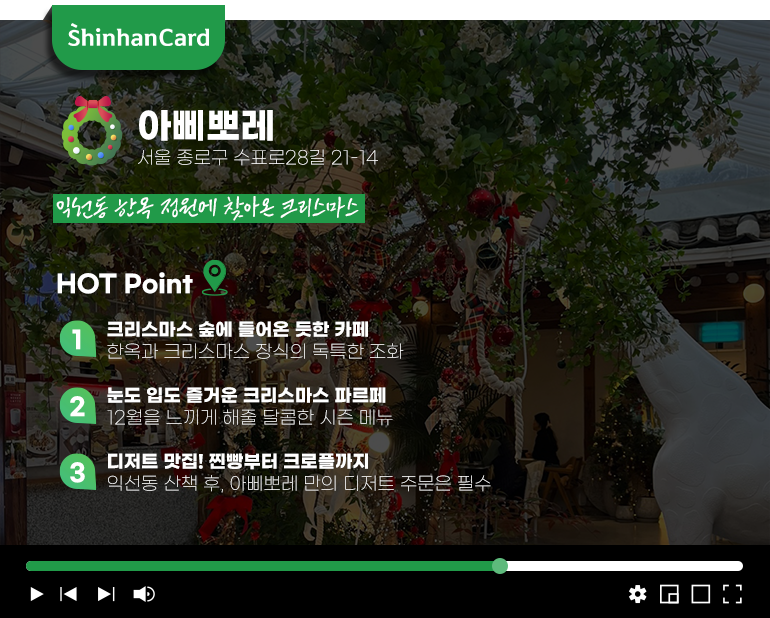 1년 중 가장 기다려지는 하루를 꼽을 때, 생일보다도 이날을 외치는 사람들이 있습니다. 바로 크리스마스인데요! 크리스마스는 당일에 누리는 기쁨보다도, 11월 무렵부터 크리스마스로 향하는 모든 날 들에서 설렘을 느끼게 하죠. 이토록 크리스마스를 기다려온 사람이라면 이 시즌을 여느 날과 같이 평범하게 보낼 수는 없겠죠! 누구보다 크리스마스에 진심인 이들이 모이는 곳! 이달의 핫플레이스를 소개합니다.