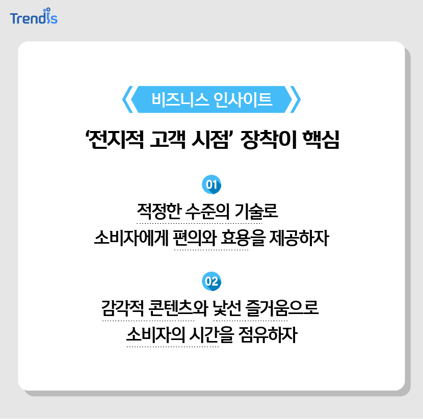 디지털 기술을 기반으로 소비자에게 편의와 효용을 제공하거나, 감각적인 콘텐츠와 낯선 즐거움으로 소비자의 시간을 점유하는 것이 살아남는 공간의 생존 전략임을 알 수 있었습니다.