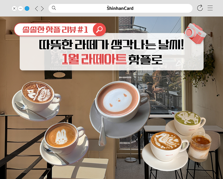 커피에 스팀우유를 이용해 빠르게 그려내는 라떼아트는 평범한 커피 한 잔을 훨씬 더 특별하게 만들어주는 마법처럼 느껴지기도 하는데요. 음료 위 작은 캔버스, 바리스타의 손끝에서 화려하게 또는 귀엽게 탄생하는 작은 그림은 놀라울 만큼 행복감을 선사합니다. 그저 음료 한 잔이지만, 반복되는 일상에 지친 사람들의 마음을 밝게 만들어 주길 바라며 쏠쏠한 핫플 리뷰 여기서 마치겠습니다. 찬바람 부는 1월, 눈도 입도 행복한 따뜻한 라떼아트 맛집으로 떠나보세요!