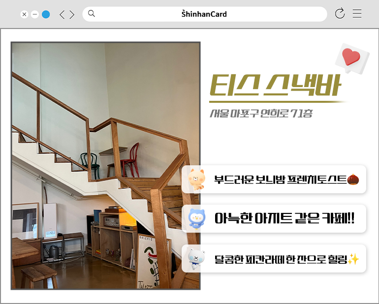 보늬밤 외에도 바닐라아이스, 끼리크림치즈 등 다양한 토핑이 제공되는데요. 티스 스낵바는 연남동과 홍대 일대에서 이미 커피가 맛있는 카페로 소문이 나 있지만, 사장님이 직접 만들어 주시는 빵과 디저트가 곧 그 유명세를 따라가지 않을까 싶은 느낌이 강하게 들었습니다. 휴식이 필요한 어느 날, 티스 스낵바에 흐르는 재즈 선율과 달콤한 디저트들로 포근한 하루를 만들어 보세요!