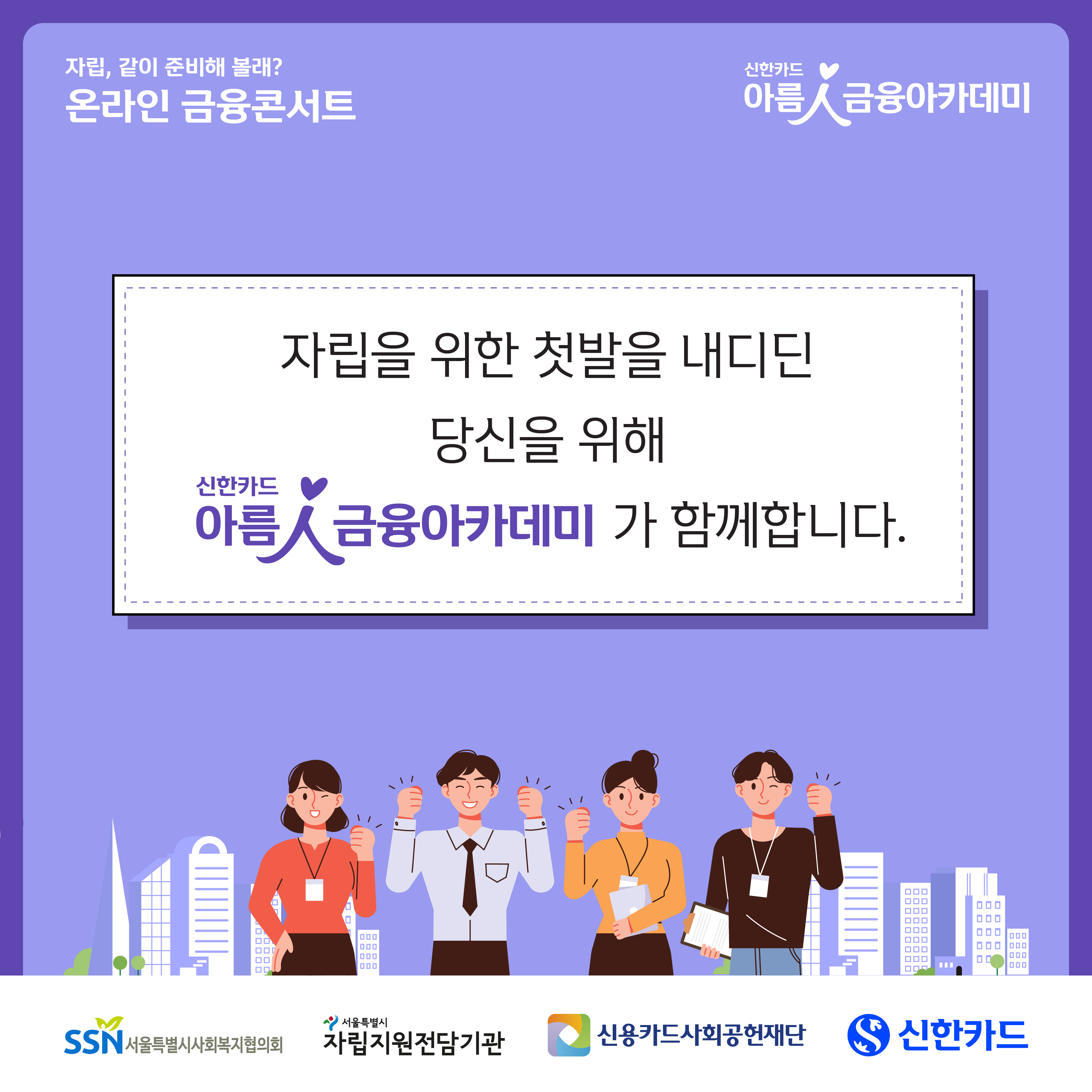 신한카드에서는 올해도 자립준비 청년들을 응원하고자 온라인 금융콘서트를 진행했습니다.