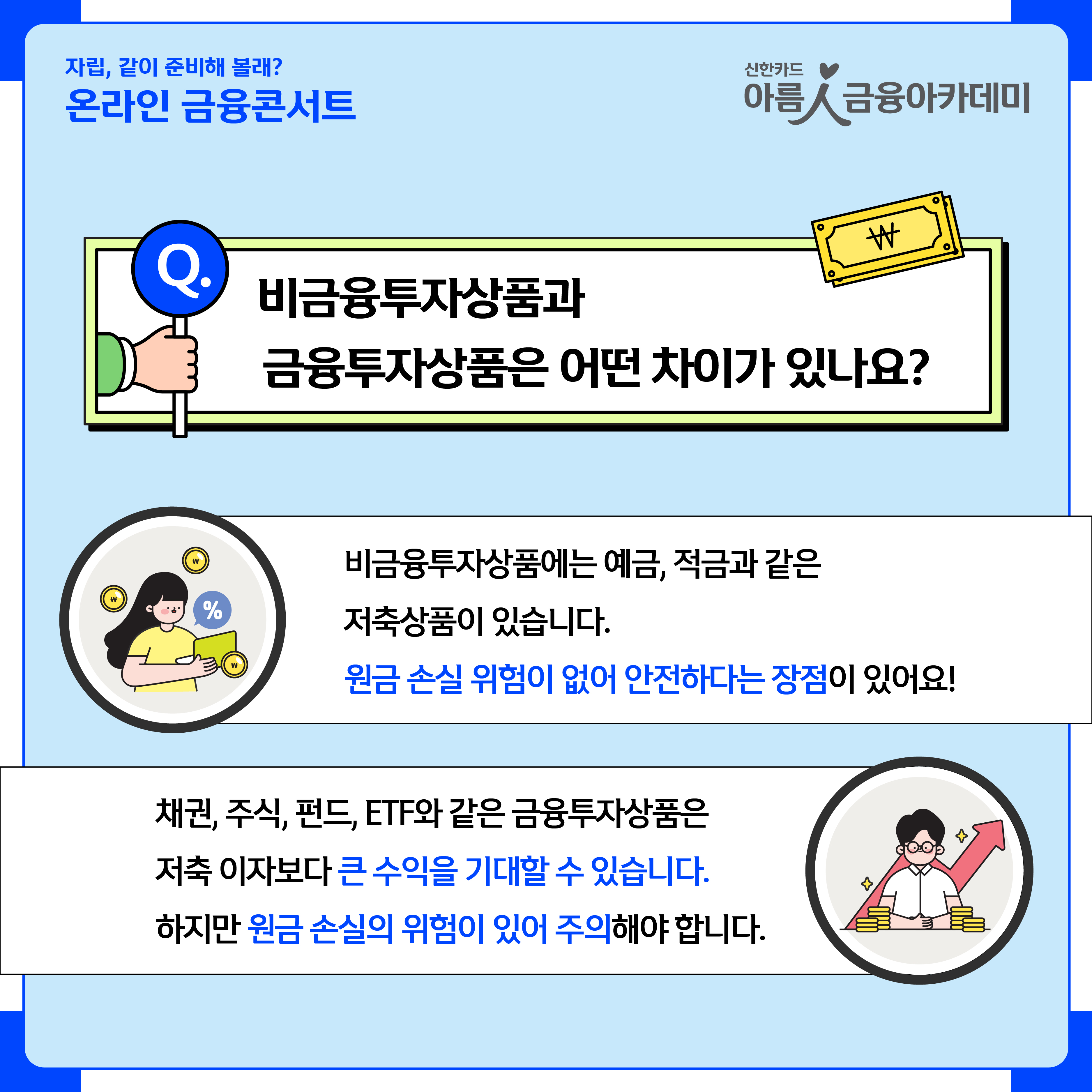 자립준비 청년들을 위해 신한카드 아름인 금융아카데미에서 준비한 온라인 금융콘서트 2탄! 이번 시간에는 미래를 위한 자립지원금을 주도적으로 사용하고 똑똑하게 관리하는 자립지원금 관리법에 대해 알아보았는데요. 금융정보공학과 박원주 교수님과 함께한 이번 온라인 금융콘서트! 내가 스스로 관리하는 똑똑한 목돈관리 비법에는 어떤 방법들이 있을지 자세히 살펴보겠습니다.