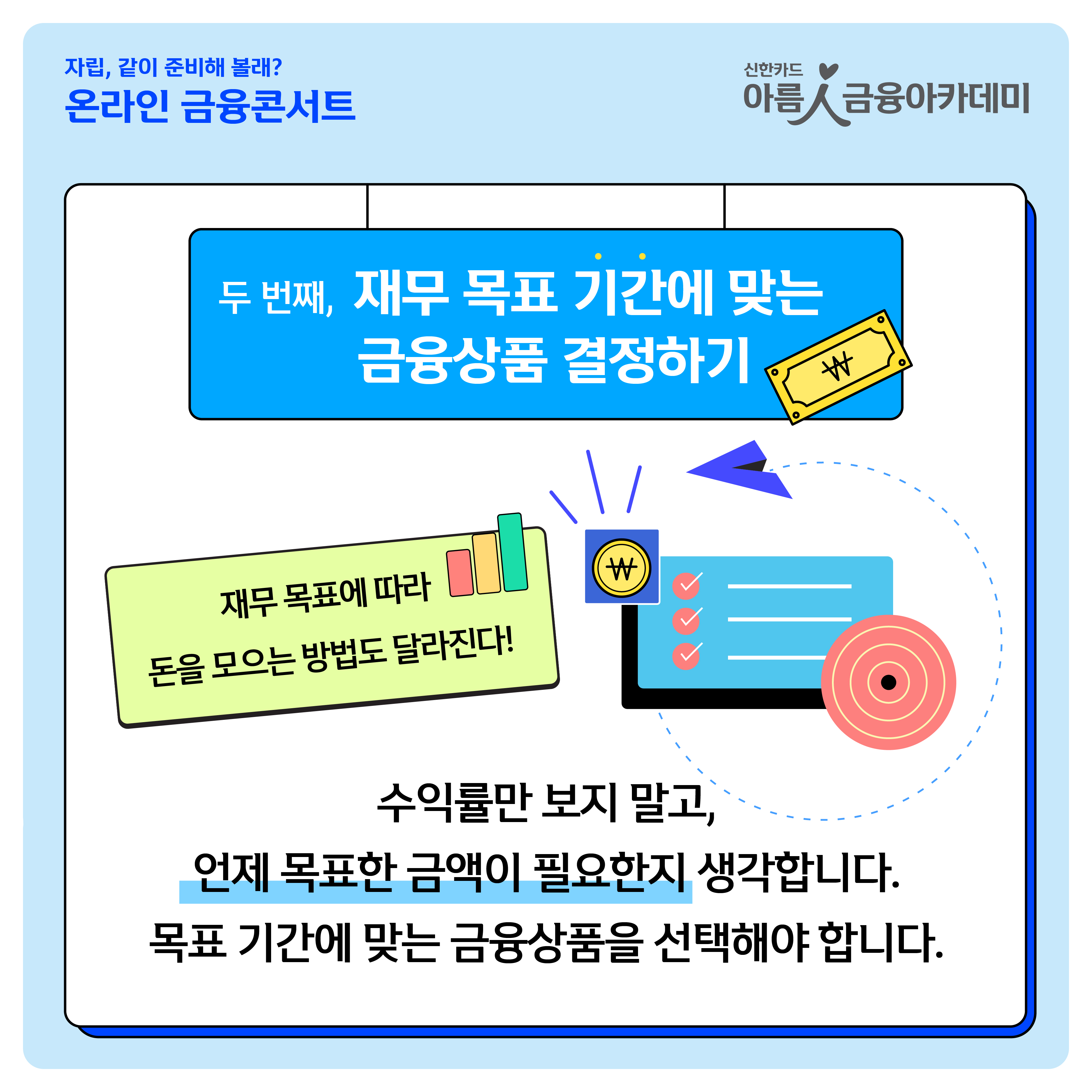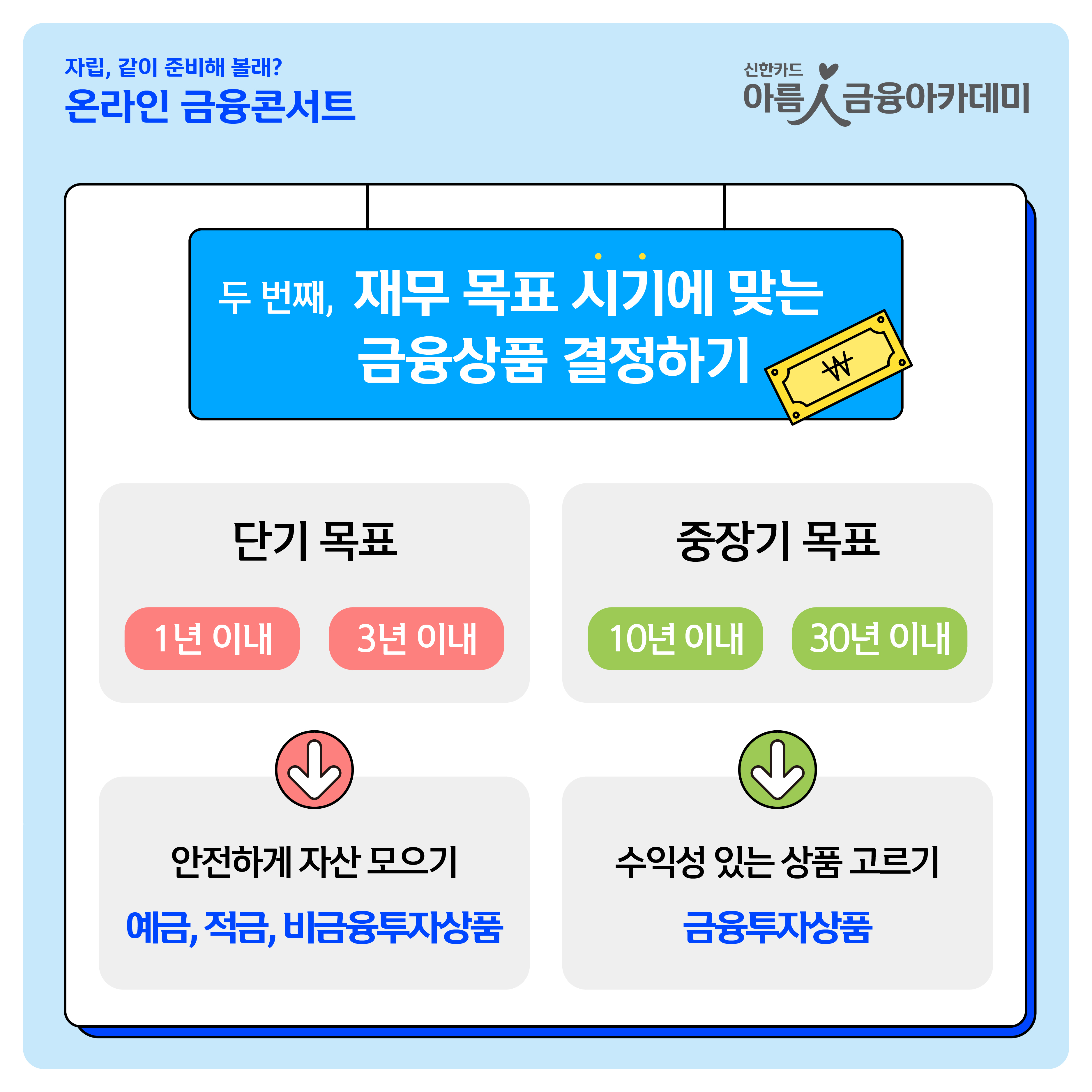 자립을 위한 소중한 비용을 똑똑하게 관리하고 싶다면 인생을 전체적으로 바라보고 구체적인 재무 목표와 재무 목표 기간에 맞는 올바른 금융상품을 선택하는 것이 중요합니다. 이러한 준비는 장기적인 재정적 안정과 더 나은 미래를 위한 든든한 기반이 되어 경제적 자립의 밑거름이 될 거예요.