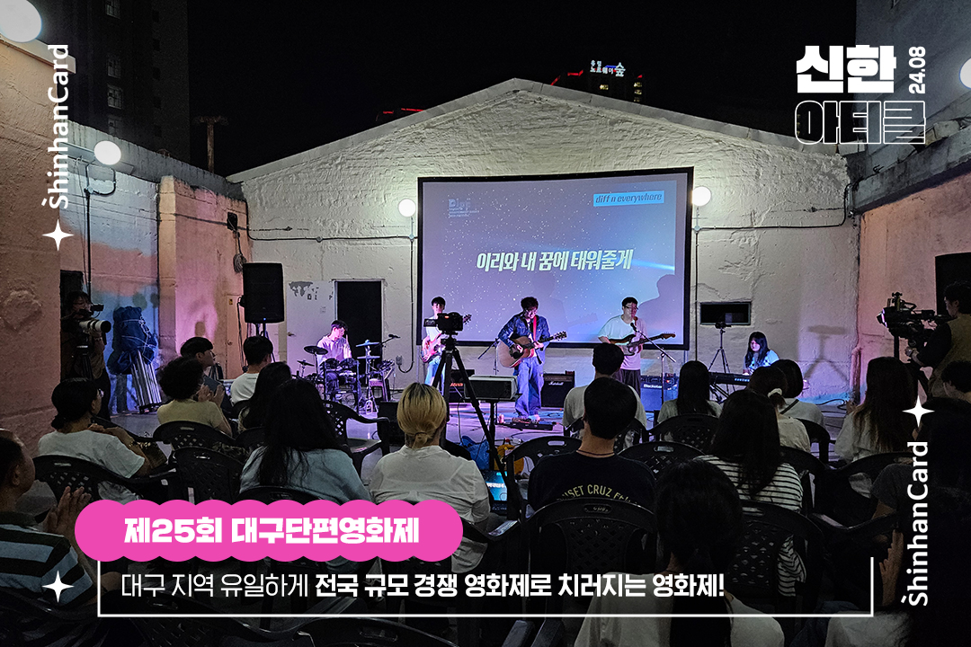 올해로 25회를 맞이한 대구단편영화제가 2024년 8월 21일부터 8월 26일까지 6일간 단편영화 축제를 개최합니다. 대구 지역에서 유일하게 전국 규모의 경쟁 영화제로 치러지는 대구단편영화제는 전통, 상금 규모, 배출 영화인 등 여러 기준에서 가장 권위 있는 국내 단편영화제 중 하나로 자리 잡고 있는데요. 올해 영화제의 국내경쟁 부문에는 전년도 출품 수를 크게 웃도는 1,203편의 작품이 출품되었고, 대구, 경북 지역 제작 영화를 대상으로 하는 지역경쟁 부문 애플시네마에는 총 36편이 출품되었습니다. 이 중 국내 경쟁 32편, 애플시네마 7편이 최종 경쟁작으로 선정되어 영화제 기간 관객을 만나게 됩니다. 특히 올해는 기술적 완성도가 높은 장르 영화가 강세를 보였고, 주제적으로는 친구와 직장 생활 등 사회적 관계를 조망한 작품이 많았다고 합니다.