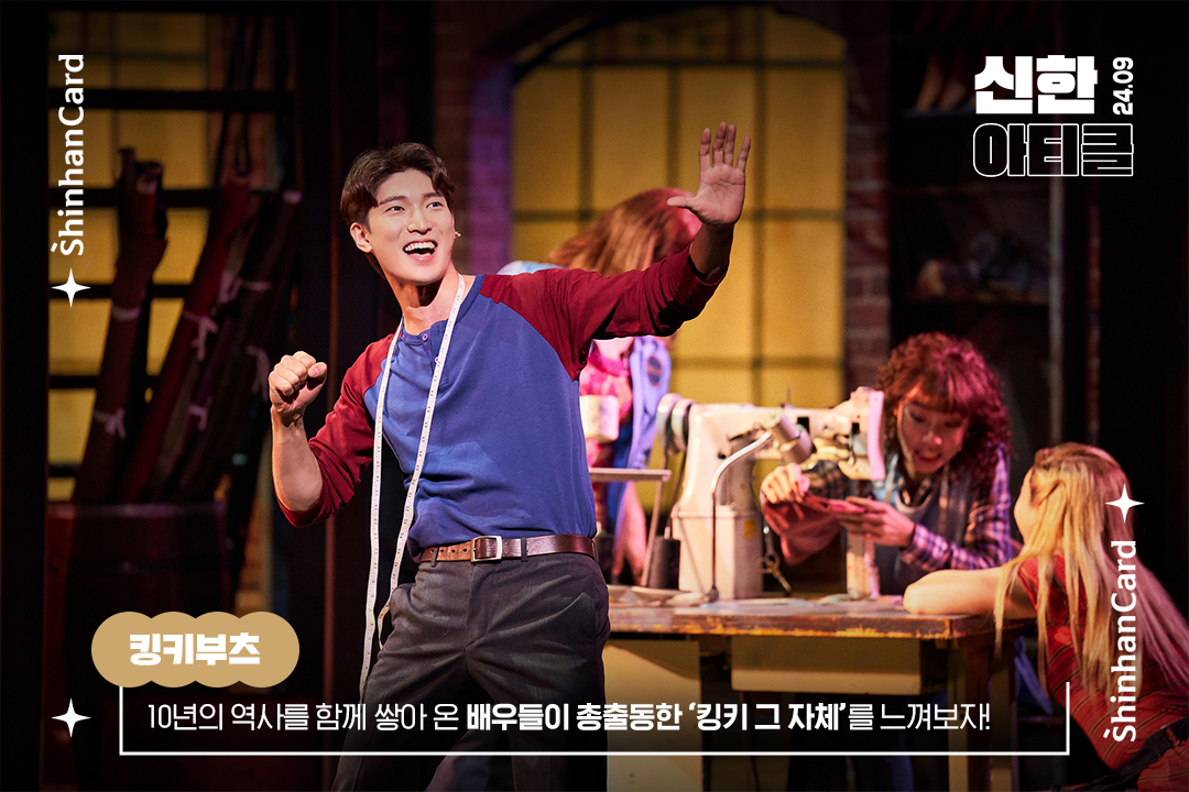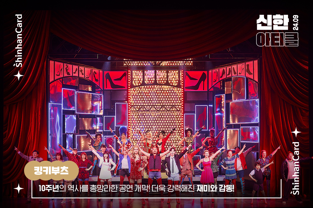 올해는 <킹키부츠> 10주년 공연을 기념해 기념비적인 캐스팅을 공개했는데요. ‘찰리’역의 김호영, 이석훈, 김성규, 신재범, ‘롤라’역의 박은태, 최재림, 강홍석, 서경수, ‘로렌’ 역의 김지우, 김환희, 나하나, ‘돈’역의 고창석, 심재현, 전재현 등 2014년 한국 초연부터 2022년 다섯 번째 시즌까지 10년의 역사를 함께 쌓아 온 배우들이 총출동해 ‘킹키 그 자체’를 선보일 예정이라고 하니 올해 킹키부츠의 10주년 역사를 함께해보세요! 또 하나! 신한카드 고객이라면 10월 초에 진행될 신한카드 더모먼트 <킹키부츠> 도 놓치지 마세요!