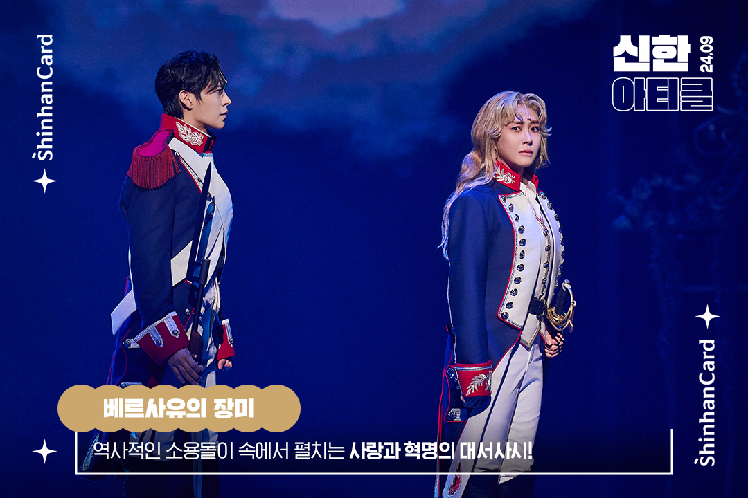 지난해 12월 한국 창작 뮤지컬 중 최초로 초연 전 뮤지컬 콘서트로 관객에게 작품을 선보이는 파격적인 시도를 보여줬던 뮤지컬 <베르사유의 장미>는 이후 만반의 준비를 하며 작품의 완성도를 높였고, 더욱 화려한 무대 디자인과 의상, 분장, 가발, 조명, 소품 등으로 관객들에게 무대 예술의 신세계를 선보일 것을 예고했는데요. 그간 EMK가 축적해 온 모든 경험과 노하우를 집중할 정도로 공을 들인 작품인 만큼 완벽한 무대로 관객들에게 큰 감동을 선사할 예정으로 많은 기대를 모으고 있습니다. 뮤지컬이 주는 감동이 배가되는 화려한 창작 뮤지컬의 세계로 신한카드와 함께 떠나봐요!