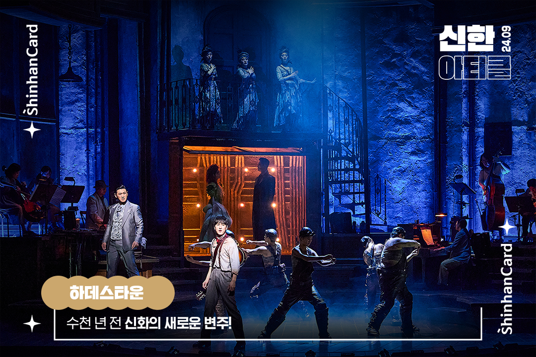 뮤지컬 <하데스타운>은 갑작스럽게 죽음을 맞이한 아내 에우리디케를 되찾기 위해 지하 세계로 향하는 오르페우스의 이야기와 사계절 중 봄과 여름은 지상에서 가을과 겨울은 지하에서 남편인 하데스와 보내는 페르세포네의 이야기가 지상과 지하 세계를 배경 삼아 자연스럽게 교차되는 무대로 관객들을 맞이합니다. 이 모든 이야기들을 관객들에게 전달하고 오르페우스를 지하 세계로 인도하는 내레이터 역할의 헤르메스 역시 제우스의 전령으로 등장하는 신화 속 인물에서 영감을 얻어 재창조되었는데요. 여름, 가을, 겨울 그리고 다시 봄으로 이어지는 계절의 순환을 삶의 여정에 빗대어 그려지는 신화 속 두 개의 사랑 이야기는 무대 위에서 자연스럽게 교차되며 공연 중 관객에게 끊임없는 사랑의 서사를 전개하고 있습니다. 그뿐만 아니라 불안과 의심, 구원을 노래하며 궁극적으로는 삶의 희망을 전달하고 작품의 배경이 되는 시대와 장소를 명확하게 밝히지 않았음에도 동서고금을 막론하고 누구나 공감할 수 있는 이야기로 웰메이드 뮤지컬의 감동을 그대로 느낄 수 있을 거예요. 토니어워즈 8관왕, 그래미 어워즈 최고 뮤지컬 앨범상, 한국뮤지컬어워즈 대상에 빛나는 뮤지컬 <하데스타운>과 올가을의 시작을 함께해봅시다!