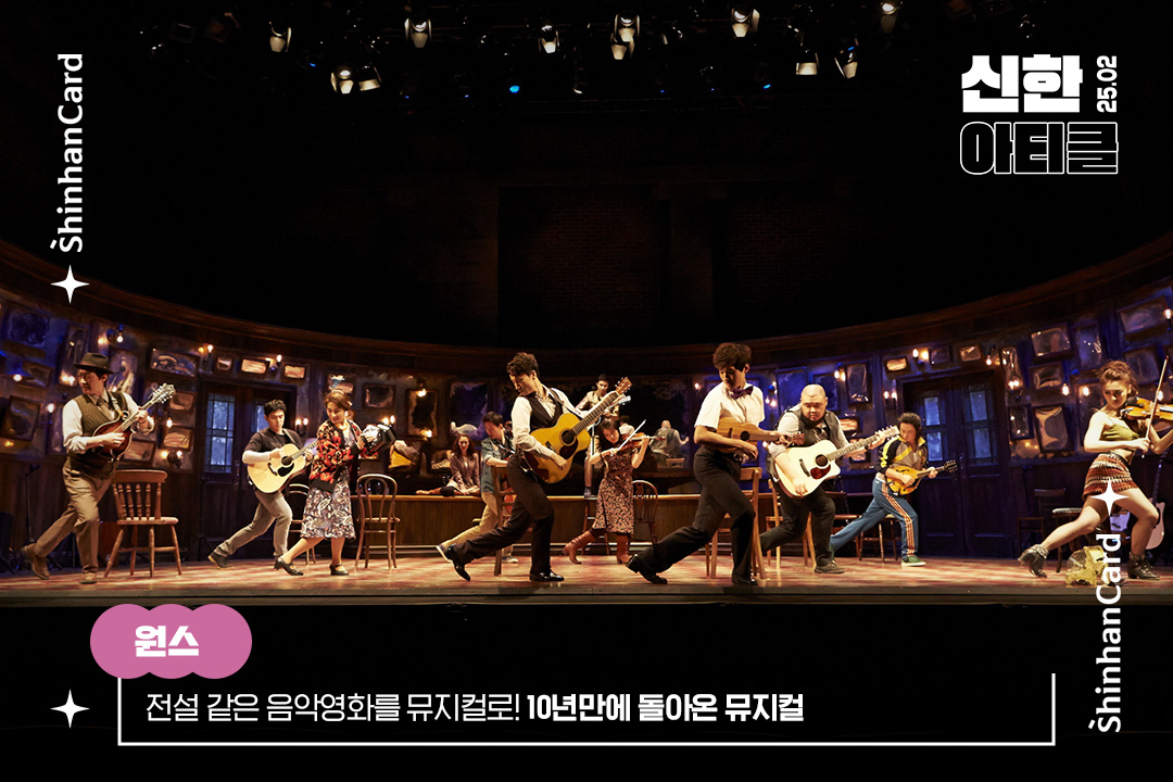 더블린의 술집을 재현한 원세트, 소시민적인 사람들과 삶과 사랑을 다룬 기본에 충실한 구성, 서정적이면서도 강렬한 음악, 창의적인 무브먼트, 직접 연주하고 노래하는 배우 등 독특하고 아름다운 감수성으로 관객들을 매혹시키는 뮤지컬 <원스>에서는 브로드웨이 뮤지컬의 일반적 공식을 찾을 수 없습니다. 가장 색다른 점은 오케스트라가 없는 뮤지컬이라는 점인데요. 배우들은 공연에 필요한 16종의 악기를 직접 연주하며 연기합니다. 더블린의 한 소박한 술집, 어디서나 볼 수 있음 직한 친근한 사람들, 그들은 악기를 연주하고 노래하며 발을 구르거나 손뼉을 치는 등 물결처럼 움직입니다. 배우들의 무브먼트는 글렌 핸사드, 마케타 이글로바의 지극히 아름답고 귀에 익은 음악들을 만나 강렬한 힘을 얻고, 감정의 파고를 증폭시킵니다.