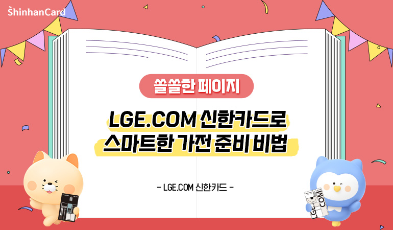 봄이 오면 학생들은 새 학기와 개강을 준비하지만 어른들은 이사를 계획하곤 합니다. 자녀들이 학교를 가 있는 시간을 효율적으로 쓸 수 있고 덥지도 춥지도 않은 날씨는 이사를 하기에 최적이기 때문인데요. 이사와 같은 큰 이동은 오래된 낡은 짐을 버리고, 새 가구나 가전을 정비하는 기회가 되기도 합니다. 이번 쏠쏠한 페이지에서는 본격 이사 시즌을 앞두고 새로운 가전을 들일 계획이 있는 여러분을 위한 카드를 준비했습니다. 특히, 가전 구매를 많이 하게 되는 신혼부부들도 주목해 주세요! LG 가전제품을 가장 합리적으로 구매할 수 있는 치트키, LGE.COM 신한카드를 소개합니다!