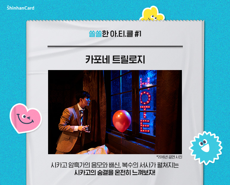 카포네의 활동기인 1923년을 배경으로 하는 ‘로키’에서는 마피아 횡포가 극성이었던 시카고 유명 클럽의 쇼걸 롤라 킨의 잃어버린 사건 기억을 찾아 나섭니다. 카포네가 알카트라즈 감옥에 수감된 1943년을 배경으로 한 ‘루시퍼’에서는 조직 내 이인자인 닉 니티가 시카고에 빛을 가져오려 했지만 결국 어둠으로 추락하고 마는 이야기가 펼쳐지죠. 시리즈의 마지막 편인 ‘빈디치’는 카포네가 은퇴한 후인 1943년의 이야기를 다룹니다. 젊은 경찰 빈디치가 피비린내 나는 복수극을 펼치며 가장 잔혹한 결말로 관객들을 이끕니다. 이처럼 <카포네 트릴로지>는 각각의 작품이 독립적인 이야기를 지니고 있으면서도 시카고 암흑가를 배경으로 한 유기적인 서사를 통해 더욱 강렬한 몰입감을 선사하는데요. 한 편만 보아도 충분히 흥미롭지만 세 작품을 모두 관람하면 더욱 깊이 있는 서사를 경험할 수 있다는 점에서 더 특별하다고 할 수 있습니다. 느와르 장르, 실화 기반의 서사를 좋아하는 분이라면 너무나도 매력적일 작품 <카포네 트릴로지>. 암흑가의 음모와 배신, 복수의 서사가 펼쳐지는 이 무대를 통해 시카고의 숨결을 온전히 느껴보세요!