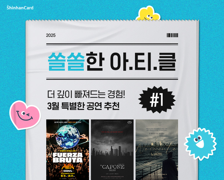 마음만 먹으면 어디든 갈 수 있을 것 같은 따스한 봄날, 일상의 반복에서 벗어나 더 특별한 감동과 흥분을 경험하고 싶다면? 3월 쏠쏠한 아.티.클이 추천하는 각기 다른 매력을 지닌 공연들이 우리를 기다리고 있습니다. 따뜻한 계절 속에서 사랑하는 이들과 함께 공연장을 찾아, 특별한 하루를 더욱 의미 있는 순간으로 채워보면 좋겠습니다.