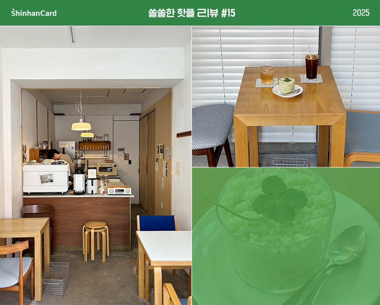 이곳의 시그니처 메뉴는 바로 네잎클로버가 살포시 올라가 있는 청사과 소르베! 특유의 풋사과 향과 풍부한 과즙이 시원하고 상큼하게 번지는 아이스 디저트 메뉴가 점점 따뜻해지는 날씨에 꼭 잘 어울렸어요. 행운에 온도가 있다면 분명 이런 기분 좋은 시원함이 아닐까요? 청사과 소르베를 맛본 후에는 레몬머틀 티와 아이스 아메리카노를 주문했는데요. 간단히 음료만 즐기고픈 날에도 코야코히에서는 근사한 맛을 내놓습니다. 커피도, 논 커피도, 스페셜한 디저트도 이곳에선 모두 일상적인 풍경이니까요!
