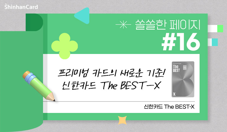 특별한 날, 특별한 나를 위한 소비가 필요할 때! 함께하면 기분 좋은 카드가 있습니다. 바로 ‘프리미엄 카드’인데요. 고급스러운 디자인의 플레이트와 다른 카드보다 높은 연회비 때문에 프리미엄 카드는 어쩐지 접근하기 어렵다는 인식이 있었지만, 최근엔 풍부한 맞춤 혜택을 바탕으로 많은 사람들에게 주목받고 있습니다. 신한카드에서도 6년 만에 새롭게 프리미엄 카드를 선보였는데요. 연회비보다 더 큰 ‘프리미엄 서비스’를 혜택으로 돌려주는 신한카드 더 베스트 엑스(The Best-X)를 소개합니다. 프리미엄 카드의 새로운 기준이 될 신한카드 더 베스트 엑스(The Best-X)와 함께 일상에서 근사한 순간을 만들어보세요!