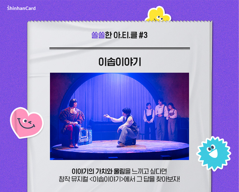 #신한카드 #쏠쏠한아티클 #알라딘 #뮤지컬알라딘 #어린왕자의별이야기 #어린왕자 #이솝이야기 #창작뮤지컬이솝이야기 #앤서니브라운전마스터오브스토리텔링 #앤서니브라운