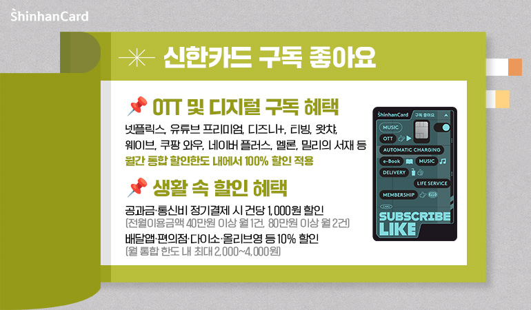 2. 구독료 걱정 없이 콘텐츠를 마음껏 즐기고 싶다면? 신한카드 구독 좋아요