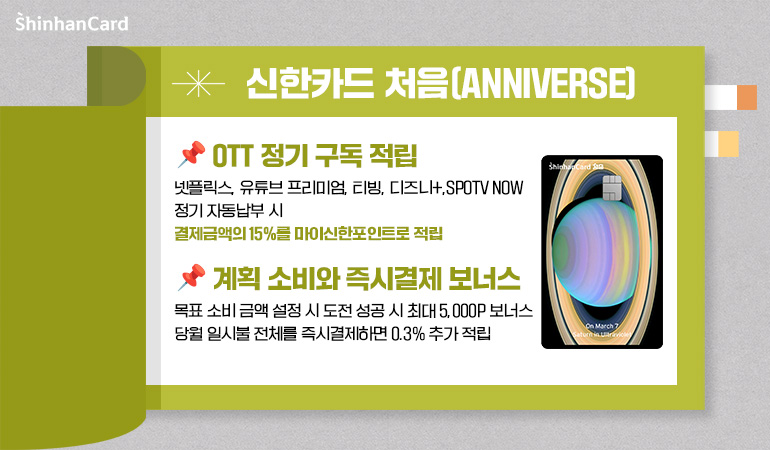 3. 개성도 혜택도 놓치고 싶지 않다면? 신한카드 처음(ANNIVERSE)