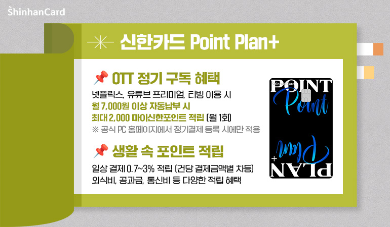 1. OTT도, 생활비도 똑똑하게 적립하고 싶다면? 신한카드 Point Plan+